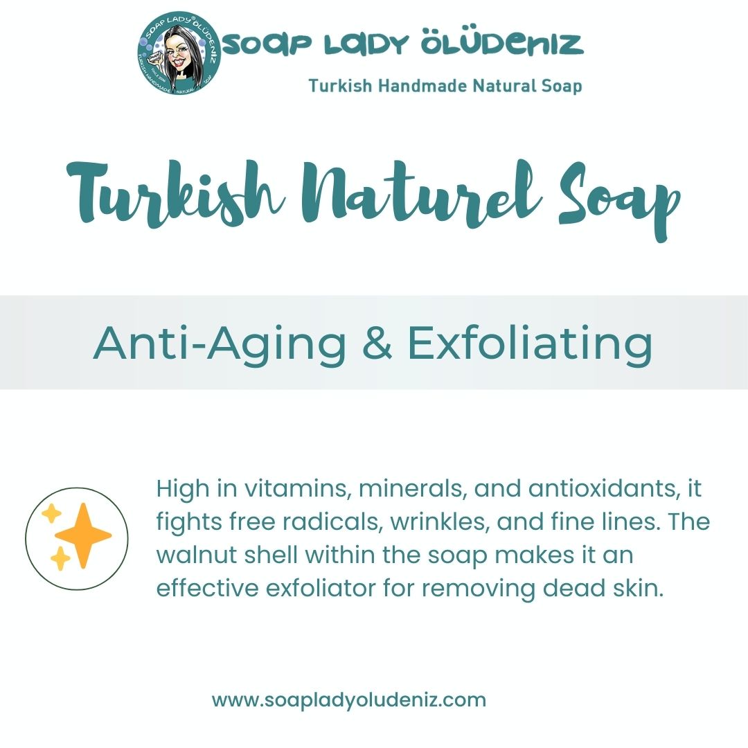 - Anti-Aging & Exfoliating ✨: High in vitamins, minerals, and antioxidants, it fights free radicals, wrinkles, and fine lines. The walnut shell within the soap makes it an effective exfoliator for removing dead skin.
